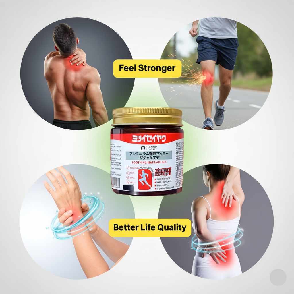 Apply a Japanese instant pain-relief, soothing massage gel in seconds—fast comfort made easy. Targets back, neck, knee and muscle soreness. Cooling, light and non-sticky.